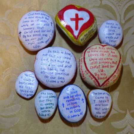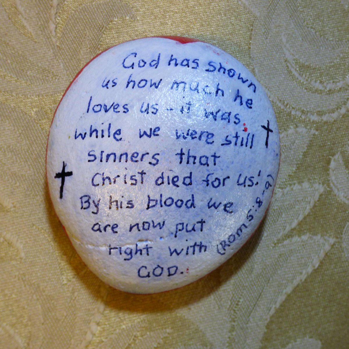 God has shown us how much he loves us. It was while we were still sinners that Christ died for us. By his blood we are not put right with God.” (Romans 5:8-9)